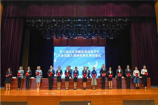 在第六届山东省师范类高校学生从业技能大赛中再创佳绩(左起第7、8位为成人vr