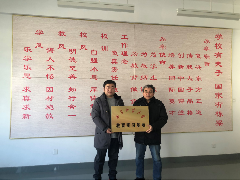教育实习基地在曲阜夫子学校揭牌。王海龙副院长、李新乡教授、物理系主任付吉永教授和物理系副主任李建彬老师赴曲阜夫子学校参加了揭牌仪式。