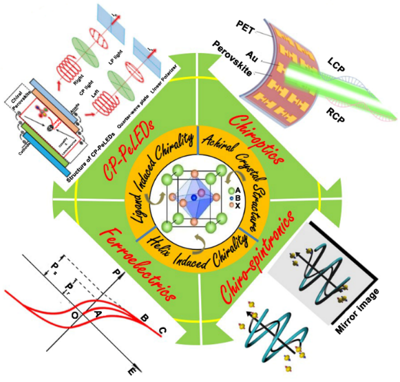 手性钙钛矿材料由于具有特殊的光电特性(如铁电、非线性光学效应、圆偏振光吸收与发射、手性诱导自旋选择性效应等),在太阳能电池、场效应晶体管、发光二极管以及探测器等领域具有潜在的应用前景,是目前国内外研究的热点。