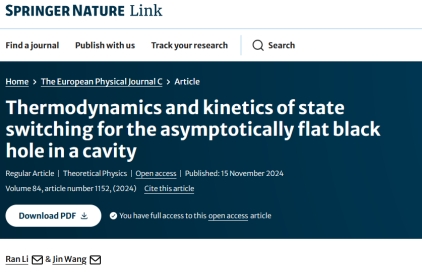 渐近平坦黑洞的相变也是大家所关注的问题。课题组系统研究了黑洞-空腔体系的热力学性质及其状态切换的动理学。通过量化相应的自由能景观,绘制了黑洞-空腔体系的相图,揭示了无电荷黑洞的Hawking-Page型相变行为,以及带电黑洞的Van der Waals型相变行为,并发现黑洞状态切换的动力学行为主要受到系综温度与自由能景观势垒高度的控制。相关研究成果发表在EPJC。