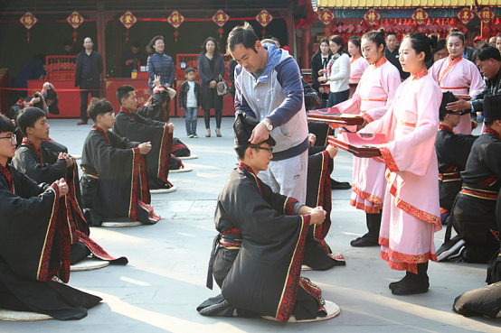 仪式开始前,新生代表身着汉服,精神饱满,在工作人员带领下下有序进入大成殿。首先,他们向至圣先师行叩拜礼,表达对先贤的崇敬之意。紧接着,团委书记王琼致辞,她告诫同学们成人意味着责任与担当,不仅要做到仁义孝廉,更要坚定理想信念、锤炼高尚品格,把自己的发展和祖国的前途、民族的命运紧密结合起来,并向各位新生寄予美好祝愿。发言结束后,家长们为同学们加冠加笄。随后,成人vr