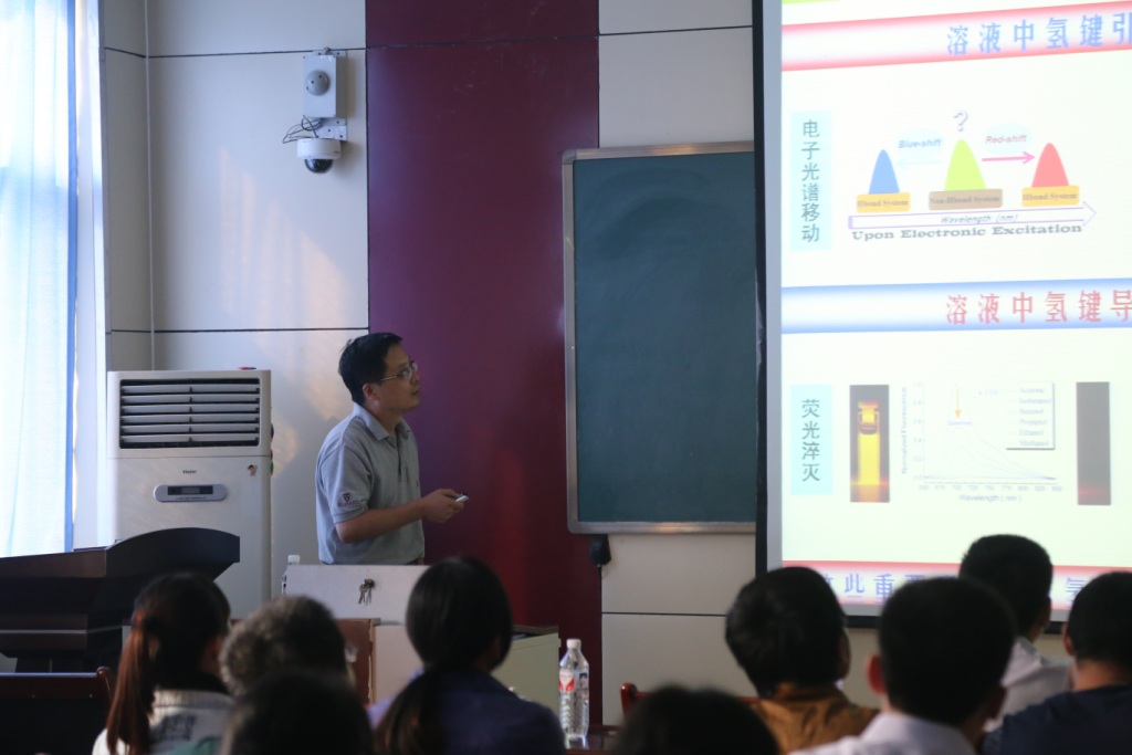 师生做了题为“分子激发态动力学”的学术报告。报告中,韩克利研究员深入讲解了困扰人们的激发态氢键引起的电子光谱移动和荧光淬灭效应的产生机理,并提出新的荧光猝灭PET机理。报告结束后,韩克利研究员与成人vr