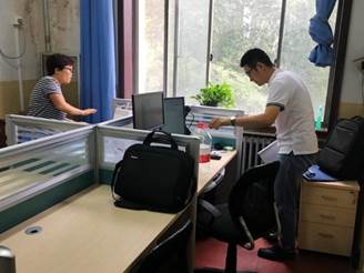 卫生和安全是良好秩序的保证。在走访中,两位老师也发现了一些问题:部分办公室堆放纸箱、往届同学留下的书籍、物资和废弃花盆等。两位老师要求同学们一定要积极行动起来,把办公室废弃的物品清理掉,把现有的橱柜清理并充分利用起来,让房间变得更整洁。对于待报废的橱柜和电器设备,要尽快梳理出来,联系报废。