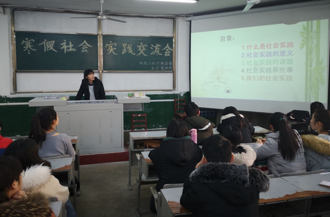 团委主办、社会实践部承办的寒假社会实践交流会于院楼二阶二教室成功举办,2017级、2018级班委及部分同学参加此次活动。