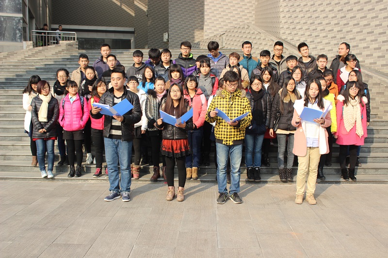 12月7日中午,成人vr 在大学生活动中心礼堂及其南侧广场进行了“辞旧迎新,颂响中国梦”纪念“一二·九”大型朗诵比赛的第二次彩排。