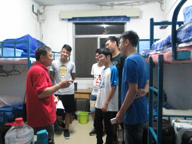 尽管下起了大雨,老师们还是坚持走访慰问新生。走访过程中,学院领导老师们依次前往每一个新生宿舍,与新生亲切交谈并嘱咐大家要注意财务、交通安全,尽快适应新生活。对于新生们提出的问题,领导老师们要求学生干部们尽快着手解决,尽快做出答复。