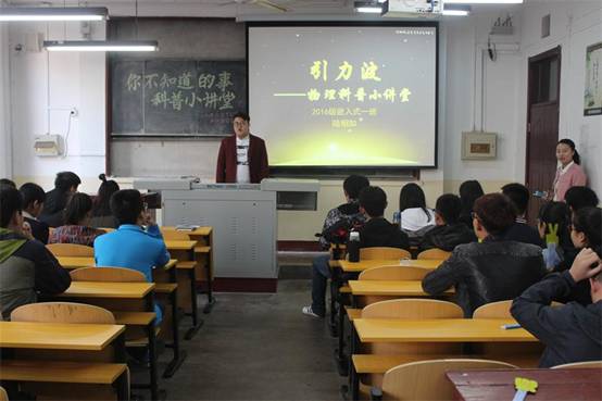 比赛伊始,由主持人宣读比赛规则及赛场纪律。本次比赛分为学前组、中小学组、大学组,共有27人参与。选手借助PPT、视频、图文讲解、现场实验等多种方式讲解科普知识,涉及多个领域,包括黑洞、引力波、北极光、马兰哥尼效应等。其中令人印象深刻的是2016级同学陆相如以电磁波类比引力波,从而阐述引力波产生的本质原因,是天体系统发生能量损失。中学组选手万鲁平讲解的科里奥利力,以“为什么英国的炮弹在阿根廷就不好使了?”为切入点,将物理知识与生活现象充分结合,通过现实中东北信风带形成的地理现象,为我们带来了一场十分精彩的科普盛宴。一段段极富个人魅力的讲解,引起了台下大众评审团的强烈共鸣,掌声不断。最终,有17人晋级决赛。