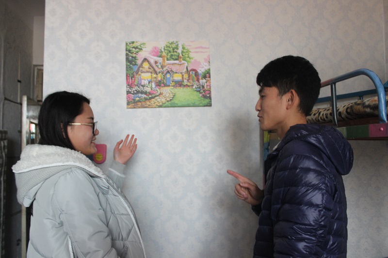 活动伊始,宿管部的同学组织、带领参加活动的同学们有序到达互访宿舍,按照顺序进行参观,被访宿舍则安排一名代表负责介绍本宿舍装扮的目的、意义和具体做法。参观结束后就开始男、女宿舍互访过程,每个宿舍都为来访的“客人”精心准备了水果、零食和饮料,表达对来访同学们的真诚欢迎。随着交谈的深入,同学们从最初的拘谨羞涩、不知所措慢慢地转变成自然大方、畅所欲言,宿舍楼里欢声笑语,同学们在其乐融融的氛围中分享参与此次活动的心得体会。