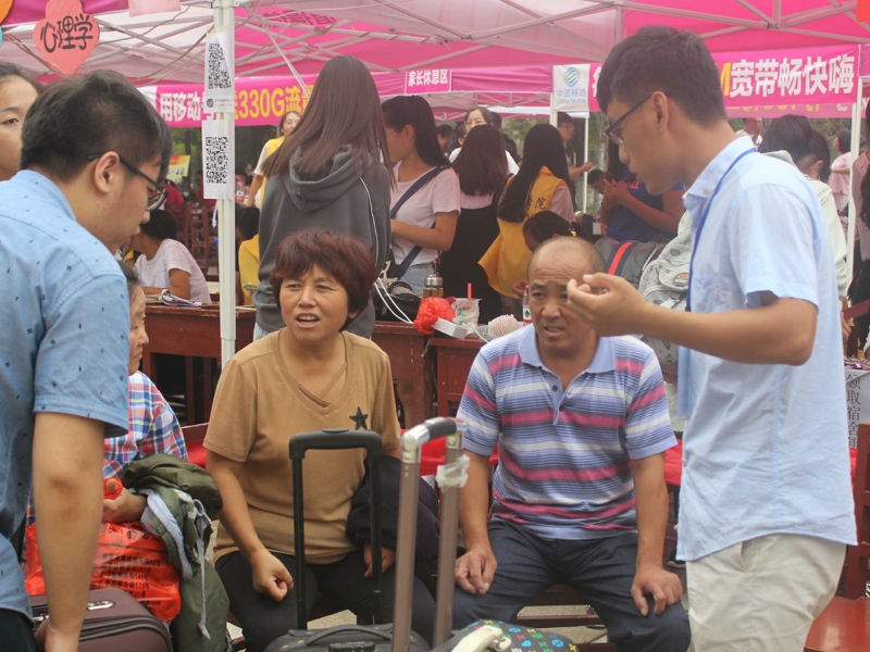 迎新现场,2016级同学满怀热情迎接前来报到的新同学和陪同的家长,引导他们完成报到流程。与以往不同,今年一改传统的报到流程,使用扫码即可完成现场报到。大家热情高涨,主动带领新生前往学生公寓,帮助新生搬运行李并介绍校园环境及沿途建筑。学院楼前,综合咨询处为新生仔细解答各种问题并带领新生参观物理教学楼,同时给他们讲解成人vr