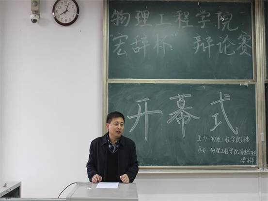 党委副书记孙金杰在学生会主席李晓博的陪同下参加开幕式。随后,2016级参赛班级在综合楼303、305教室展开比赛,12月3日,2015级辩论赛初赛在院楼412教室进行。