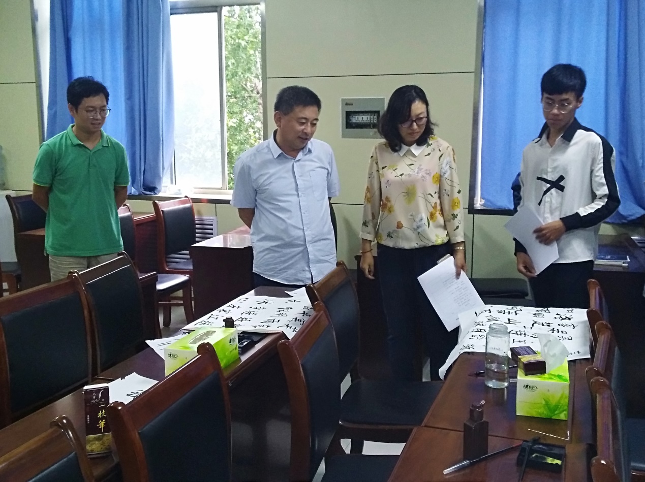 随后,主持人宣布比赛正式开始,本次比赛分为毛笔字,钢笔字和粉笔字三组。其参赛题目均选自我国优秀的诗词歌赋。毛笔字,行云流水,一气呵成;粉笔字清晰工整,书写规范;钢笔字刚劲有力,笔走龙蛇。参赛选手精神专注,书法个性鲜明,展现出了自己最高的水平。最后出席本次决赛的老师对优秀作品进行了细致的点评。