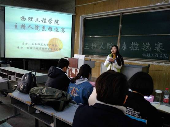 活动伊始,由主持人介绍活动细则。随后,各参赛选手按照抽签顺序依次上场,各显神通,进行全方位的自我展示。他们的话语或成熟稳重、或幽默活泼、或慷慨激昂,每个人都彰显了自己独特的魅力,点燃了现场氛围,令在场观众大饱耳福。比赛精彩纷呈,选手们分别通过诗歌朗诵、晚会开场、介绍校园等方式,辅以浓厚的感情、清晰的谈吐,展示了自己深厚的主持功底。他们举手投足间,无不体现了自己的自信与风采。本着公平公正的原则,经过评委打分,最终曹雨晴、李芳、朱泽雅、刘巍四位同学赢得晋级名额。
