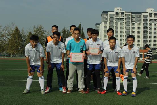 经过前期激烈角逐,最终物理学代表队、物联网工程(移动嵌入式方向)代表队、电子信息代表队、智能电子代表队进入决赛,同时进行个人金靴奖争夺战,比赛开始,双方球员开始猛烈进攻,球员们都毫不示弱,各自细腻的脚法、默契的配合、缜密的队形部署使比赛进入白热化阶段。物理学代表队旗开得胜,拿到本场比赛的第一分,最终以2:0完胜智能电子代表队,以三胜一平的战绩夺得冠军。物联网工程(移动嵌入式方向)代表队获得亚军,电子信息代表队获得季军。此外,物理学代表队队员尚涛获得金靴奖。