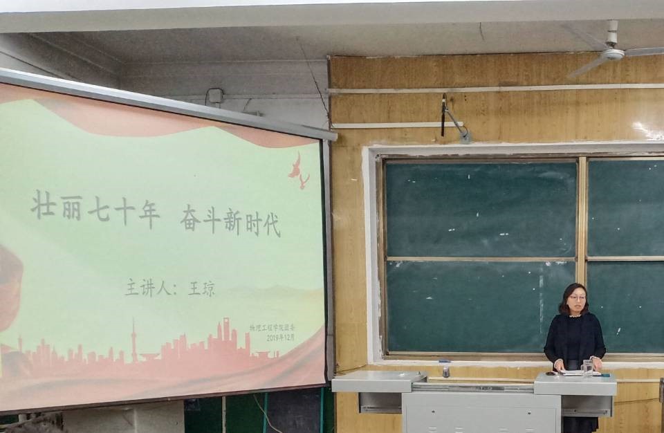 王老师以“壮丽七十载,奋斗新时代”为主题,带领同学们一起梳理了新中国走过的发展历程,总结了新中国取得辉煌成就的宝贵经验,同时分析了当前我国发展的新形势,结合视频等形式,让同学们真切感受了70年来新中国创造的辉煌成就,焕发了青年一代强烈的民族自豪感和自信心。