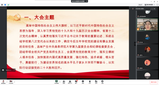 讯(通讯员:杨天荠 李思林 摄影:赵婷婷)9月30日晚,学院团委利用腾讯会议线上召开学习宣传贯彻学校第九次党代会精神宣讲会,学院团委副书记颜冲出席会议,学生会主席团成员以及各部门部长参加会议。会议由颜冲主持。