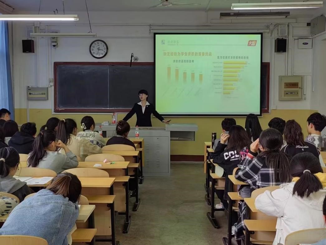 会上,孙玲玲从就业准备、简历制作、面试技巧等方面与同学们探讨求职就业的相关知识,鼓励同学们在求职过程中要坚定自信,勇于尝试;简历制作应言简意赅、突出优势;面试时要沉着冷静、大方自信,切不可急于求成;在最后的互动环节,孙玲玲解答同学们的疑惑,与同学们进行交流讨论,针对同学所提出的问题认真剖析,提出建议。