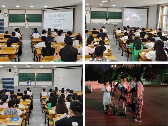 活动分为两个环节,第一个环节为朋辈导师授课。汤祥越、芦月、何璇三位朋辈导师分别围绕宇宙航行、曲线运动、洛希极限问题进行课程宣讲。朋辈导师讲课思路清晰、生动有趣,同学们在聆听中思索,在讲述中感悟物理规律。当日晚,何璇在孔子文化广场进行第二课堂“探索星空”观测活动,深化同学们对授课内容的认识和理解,激发同学们对于物理的学习兴趣,从理论走向实践,让实践丰富理论。第二个环节为指导老师点评。朱佳文老师指出,三位导师授课仪态大方,教学思路清晰,知识结构层次分明,但存在教学节奏过快、语言的重复等问题。针对这些问题,朱佳文提出了合理化建议,鼓励三位导师要用实例引发学生思考、讨论,适当互动,让学生充分发表见解。
