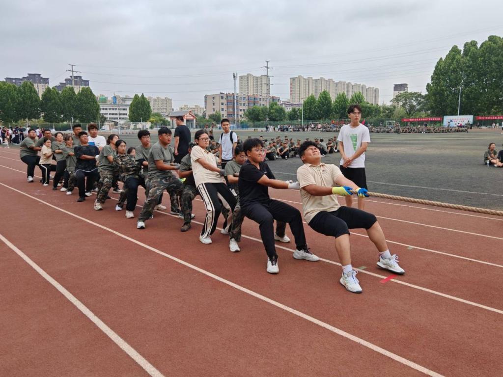讯(通讯员:席鸣 刘露洁 摄影:席鸣)为丰富新生的军训生活,强化同学们之间的凝聚力和向心力,学校于9月11日在西操场举办军训拔河比赛。新生辅导员王铭晨出席比赛现场为同学们加油助威。