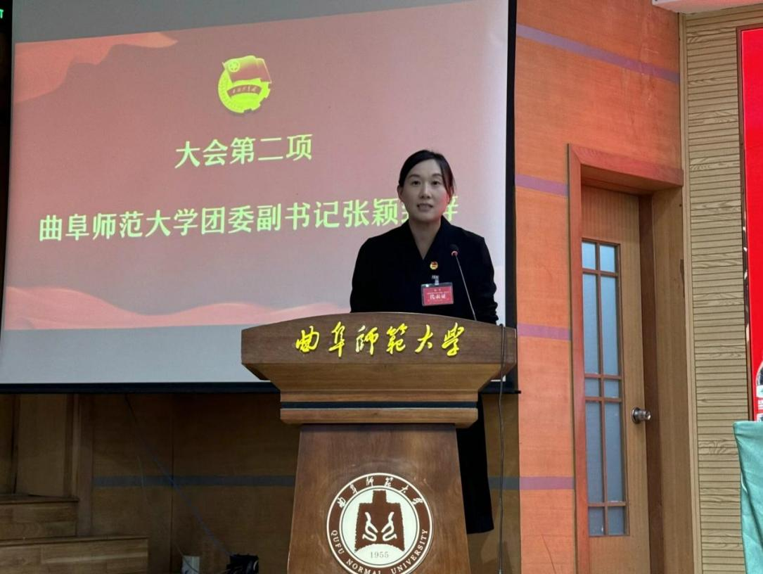 张颖代表共青团曲阜师范大学委员会向大会的召开表示热烈祝贺,并向学院全体团员青年致以诚挚问候。张颖指出团代会是回顾总结与规划展望的契机;充分肯定学院团委各项工作取得的新进展、新成效,寄语团员青年应以饱满的热情、坚定的信念、扎实的行动投身到实践当中,团结协作,共同开创共青团工作的新局面。
