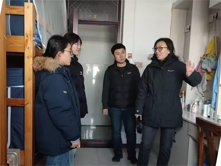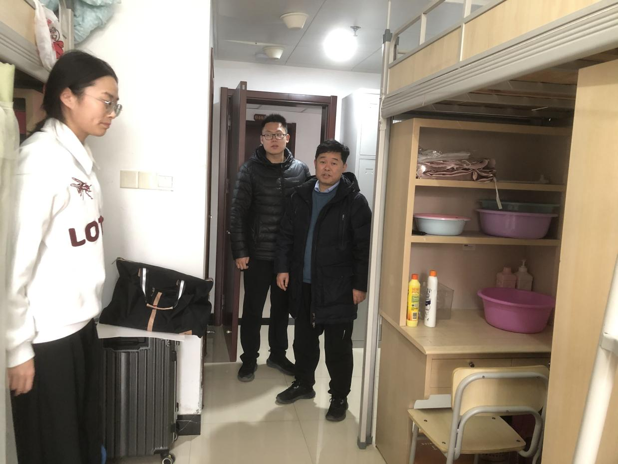 讯(通讯员:李依诺 刘露洁)为了解学生新学期返校动态,全面排查宿舍安全隐患,2月18日至20日,学院党委书记于健、院长满忠晓、校团委副书记张颖、学院党委副书记王琼、副院长张英杰、刘广强及全体辅导员前往学生公寓进行走访。