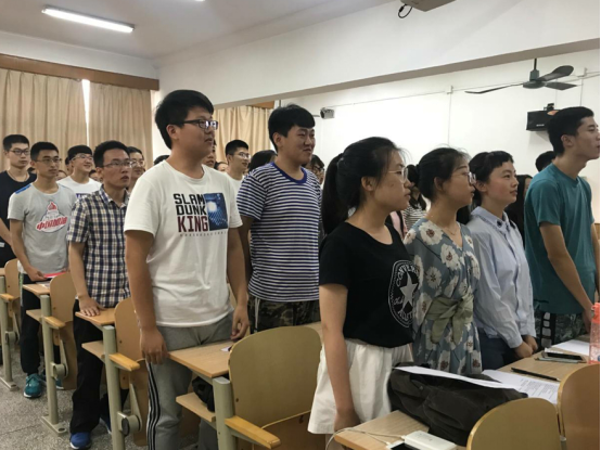 活动伊始,全体与会党员合唱《国际歌》。随后,按照中国共产党成立以后发展的时间顺序,同学们逐一唱响反映中国共产党在不同历史时期的革命歌曲。从表现共产党不畏艰险、百折不挠的《人民军队忠于党》,到歌调轻快欢乐的《南泥湾》;从充满希望的《东方红》,到歌颂社会主义建设欣欣向荣的《社会主义好》;从体现新中国朝气蓬勃的《团结就是力量》,到赞颂共产党带领人民走向富强的《走进新时代》。有大合唱也有小合唱,有男女声二重唱也有引吭高歌的独唱,一首首革命歌曲,唱出了大家对党和国家的深厚情感。最后,孙书记鼓励大家以此次活动为契机,进一步增强党员意识和党性意识,永葆共产党员政治本色。