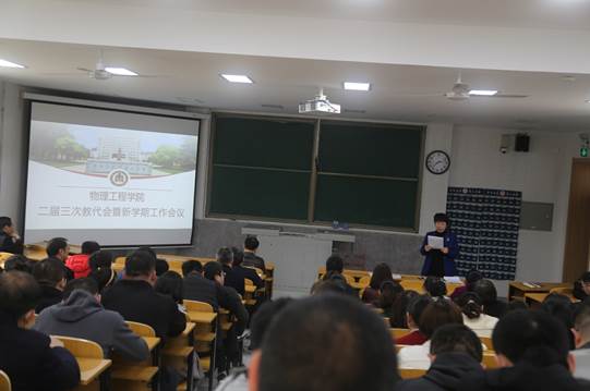 第二届教职工代表大会第三次会议在物理楼2阶1举行。全体教职工参加了会议,会议由学院党委书记杨志英主持。