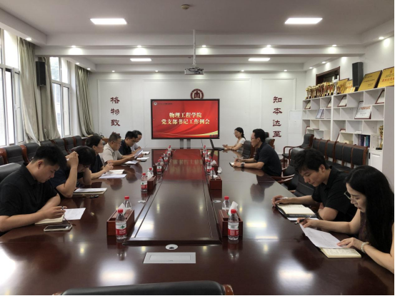 在物理楼225会议室召开党支部书记工作例会。党委书记于健、党委组织员及各党支部书记参加会议。