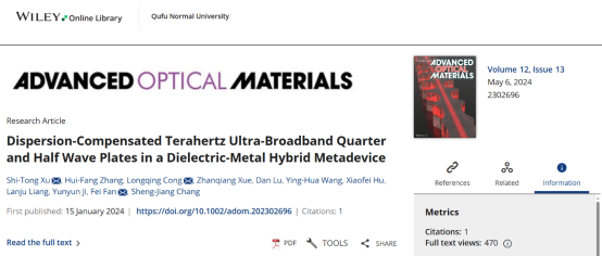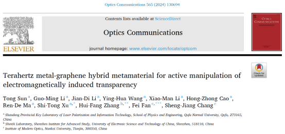 2024年以来,成人vr 许士通副教授课题组在太赫兹调控领域取得系列研究进展,研究成果相继在国际光学权威期刊发表,包括《Photonics Research》1篇(JCR、中科院一区TOP),《Advanced Optical Materials》1篇(JCR一区),《Optics Letters》1篇(JCR、中科院二区TOP);另外指导课题组研究生发表《Optics Communications》2篇,上述研究工作曲阜师范大学均为第一署名单位,相关研究得到了南方科技大学丛龙庆副教授、电子科技大学深圳研究院张慧芳研究员、枣庄学院梁兰菊教授和南开大学范飞、常胜江教授的指导,研究受到国家自然科学基金、山东省自然科学基金、山东省属高校教师访学研修项目、广东省自然科学基金、深圳市重大基础研究项目等资助。