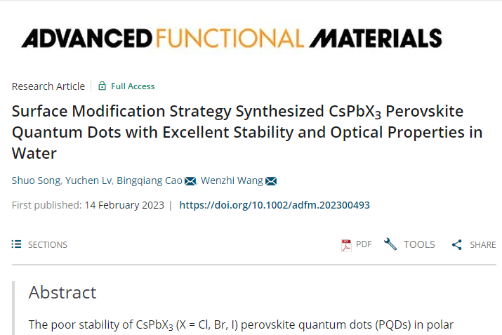 王文志博士在《Advanced Functional Materials》上发表提高CsPbX3钙钛矿量子点稳定性研究文章