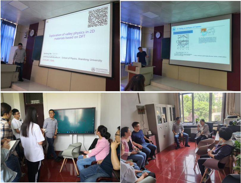 应成人vr 路洪艳教授邀请,521日,山东大学马衍东教授和郑州轻工业大学杨阳副教授来成人vr 进行了学术交流与访问,并分别为师生作了题为二维材料中新奇能谷物理的理论探索二维过渡金属化合物超导电性理论研究的学术报告。学院师生60余人参加了报告会并与两位专家进行了深入的讨论与交流。会后,两位专家与量子功能材料计算与设计创新团队的师生就双方正在开展的课题进一步进行了深入的交流,并进行了指导。通过本次学术报告与交流,拓宽了成人vr 师生的学术视野,激发了师生的科研热情,为开展更加深入的合作打下了坚实基础。