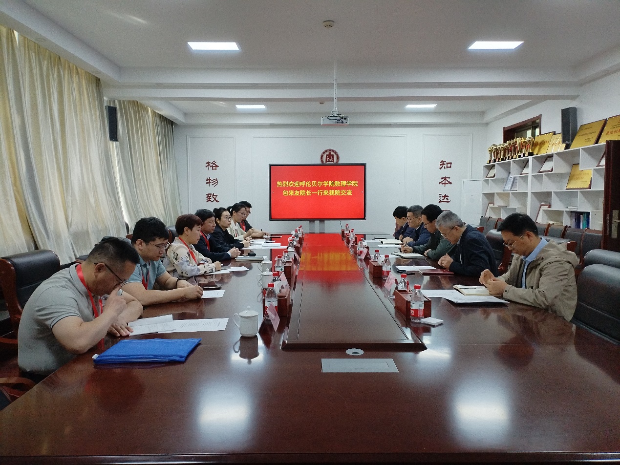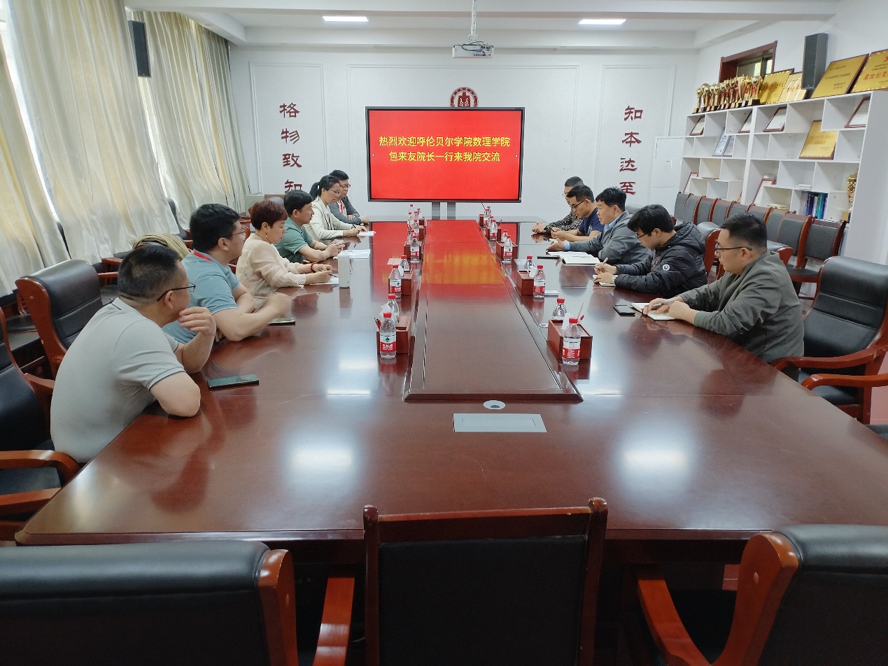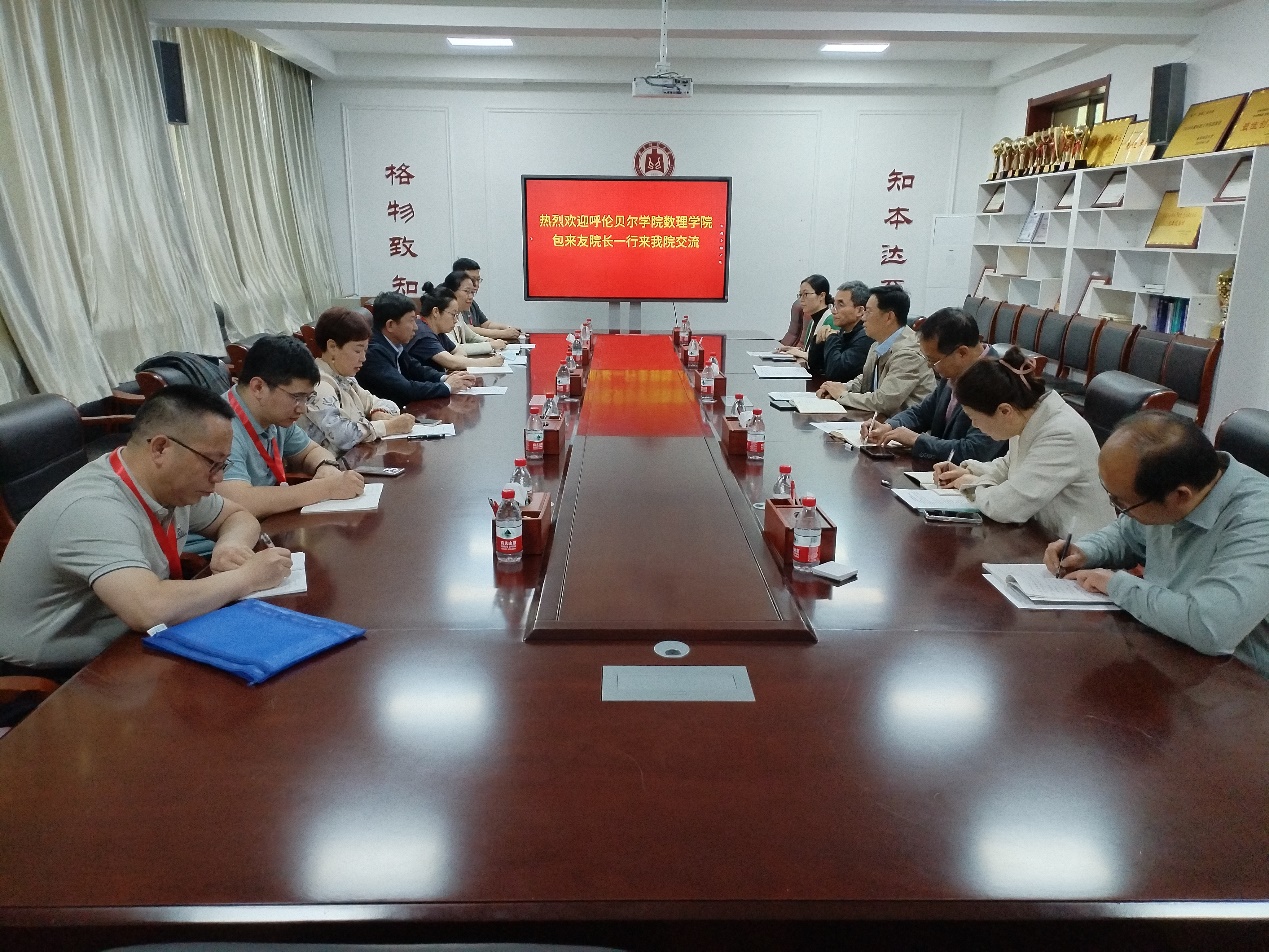 2024年4月16日,呼伦贝尔学院数理学院副院长包来友一行莅临学院调研交流。党委书记于健、院长满忠晓、教务处副处长苏庆华、副院长张英杰、刘广强参加了见面会,会议由党委书记于健主持。