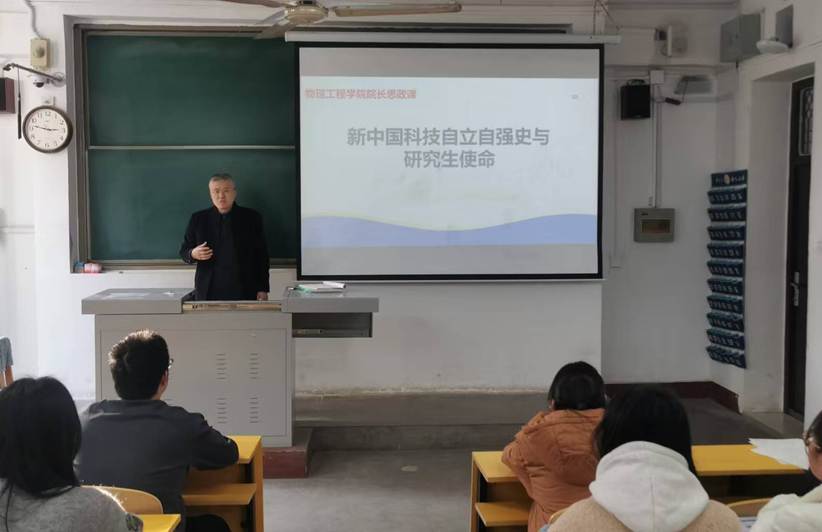 讯(通讯员:赵晴 周子洋 摄影:周子洋)为引导研究生深刻领会科技强国的时代使命,传承科学报国精神,11月7日下午,学院院长满忠晓在物理楼309为物理学专业一年级研究生讲授题为《新中国科技自立自强史与研究生使命》专题思政课。