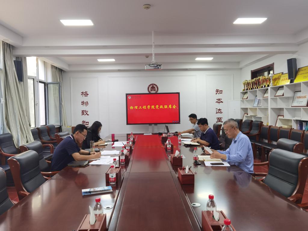 在物理楼225会议室召开党政联席会议,学院领导班子全体成员参加了会议。