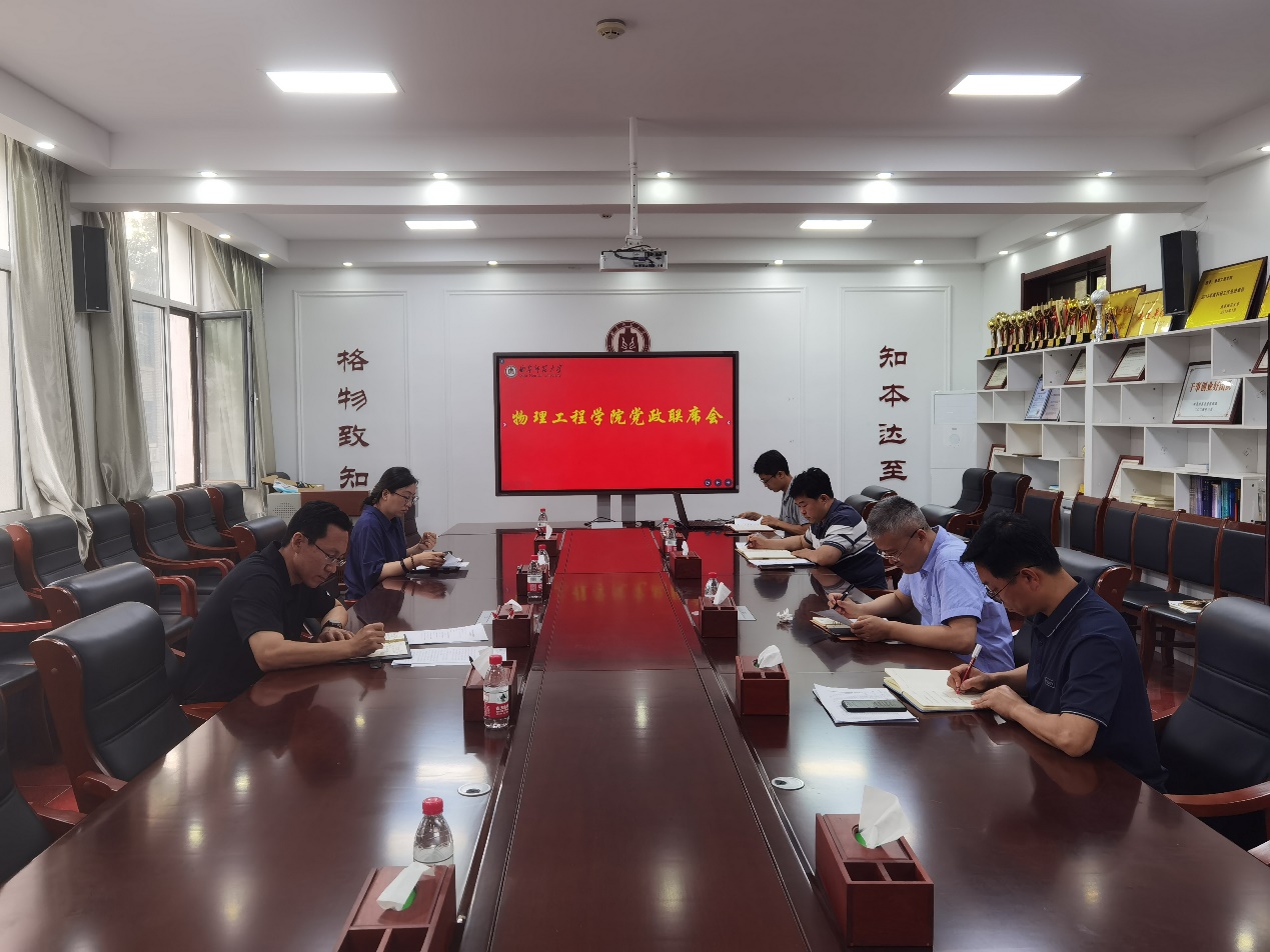 2025年5月27日,成人vr 在物理楼225会议室召开党政联席会议,学院领导班子全体成员参加了会议。