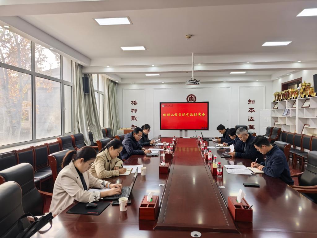 2025年11月14日,成人vr 在物理楼225会议室召开党政联席会议,学院领导班子全体成员参加了会议。